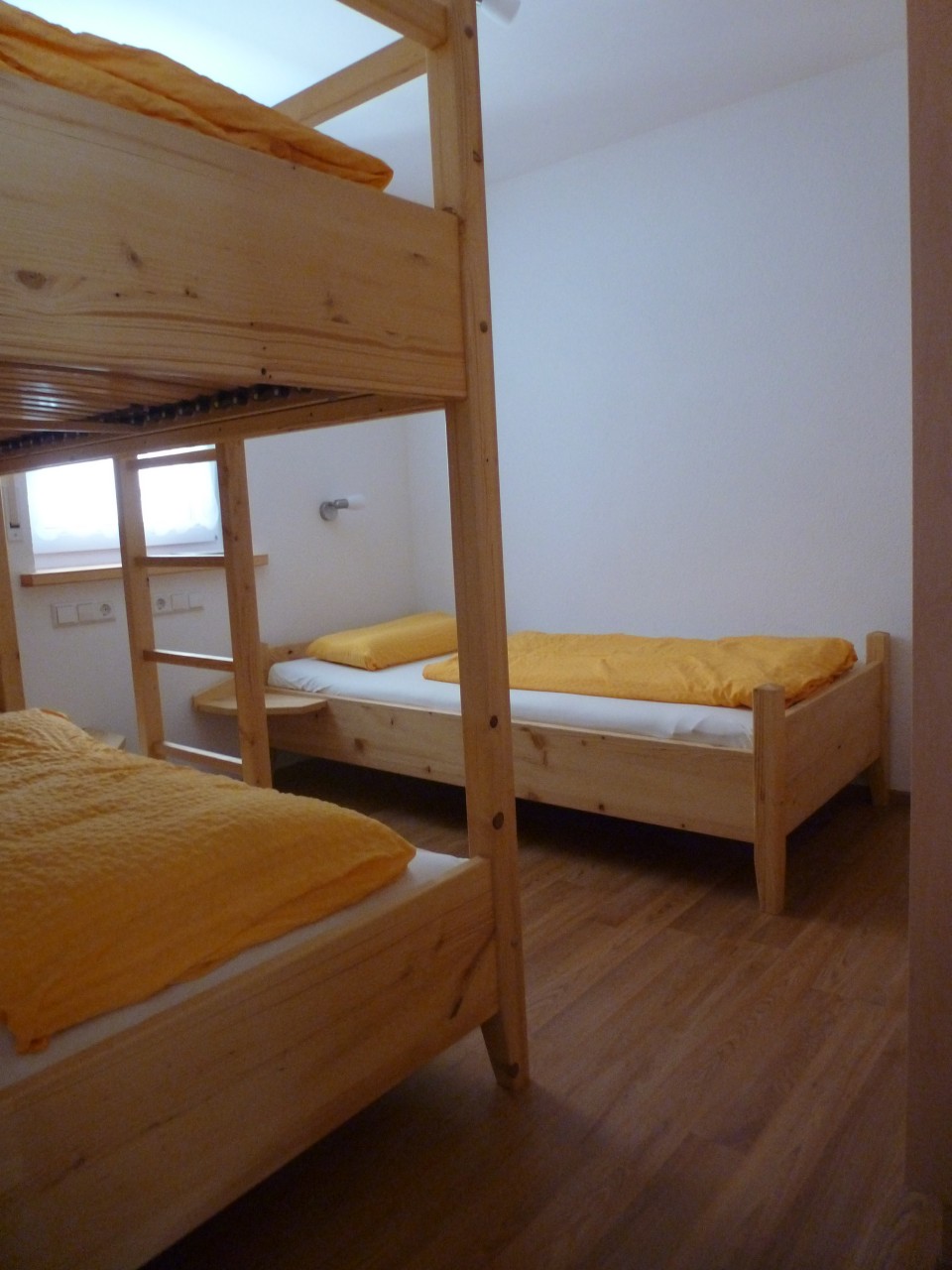 Die Wohnung Kornblume ist mit zwei Schlafzimmern ausgestattet und hat 68m². Im Elternschlafzimmer mit Doppelbett und Kleinkinderbett. Im Kinderzimmer mit einem Stockbett und einem Einzelbett. Im ersten Obergeschoß gelegen mit großzügigem Balkon nach Süden ausgerichtet.